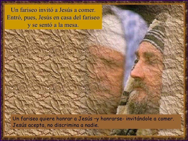 Un sábado, entró Jesús en casa de uno de los principales fariseos para comer, y ellos le estaban espiando. Notando que los convidados escogían los primeros puestos, les propuso esta parábola: "Cuando te conviden a una boda, no te sientes en el puesto principal, no sea que hayan convidado a otro de más categoría que tú; y vendrá el que os convidó a ti y al otro y te dirá: "Cédele el puesto a éste. Entonces, avergonzado, irás a ocupar el último puesto.