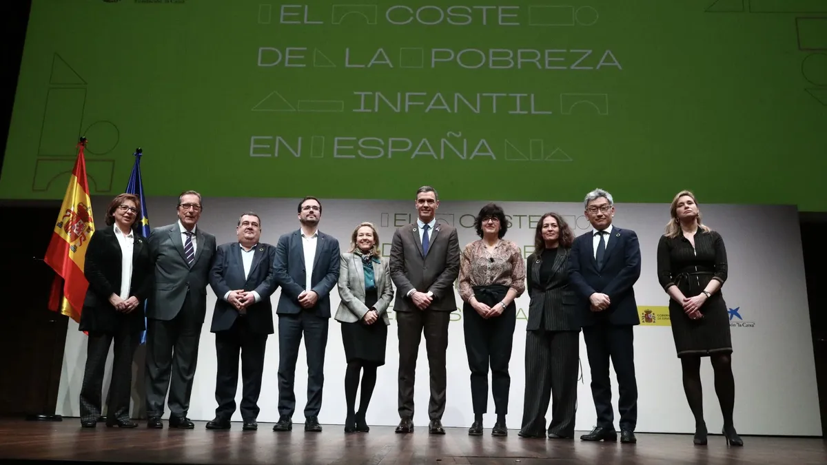 En el acto, celebrado en el auditorio de CaixaForum de Madrid, el presidente del Gobierno, Pedro Sánchez, ha remarcado que la pobreza infantil cuesta más de 63.000 millones de euros al año, el 5,1% del PIB anual en cifras de 2019. Un coste que se calcula a partir de dos magnitudes: primero, que en la edad adulta se percibirá un salario inferior en 5.100 euros brutos al año; y, segundo, el incremento exponencial del riesgo de tener una salud deficiente con los costes derivados para el sistema sanitario.