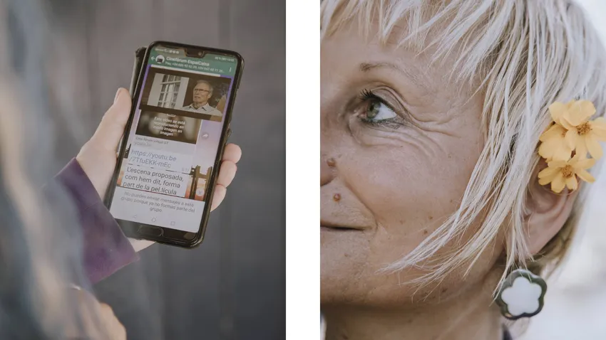 Angi lleva años frecuentando el EspacioCaixa Girona, aunque ella vive en Palamós. Cada semana se arreglaba, cogía el coche y conducía más de media hora para acudir a la cita cultural del centro. “Debo confesarte que uno de los aspectos que más me gusta del nuevo formato del cinefórum virtual, además de ahorrarme el rato de coche, es que puedo participar desde casa y en pantuflas. Más cómoda, ¡imposible!”. Aunque es una de las usuarias más jóvenes de este espacio, Angi tiene compañeros que rondan los 70 años. Y asegura que el estigma que tiene la sociedad frente a las personas mayores y la tecnología no es tal.