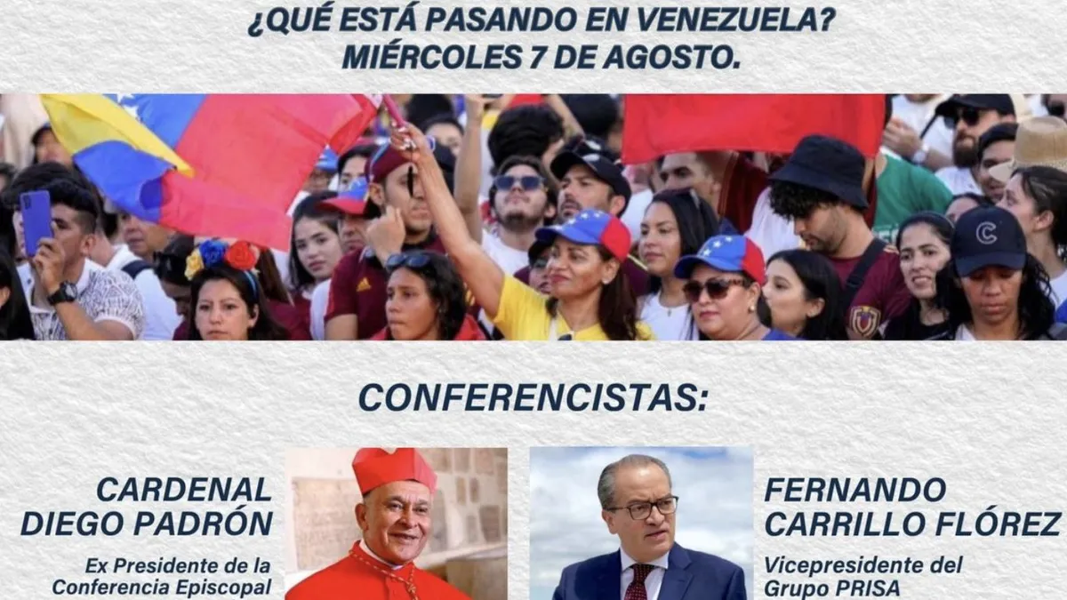 ¿Qué va a pasar en Venezuela? ¿La crisis actual por la que atraviesa el país, tras las elecciones, se resolverá, como pidió el Papa, con la justicia, la verdad, el diálogo y buscando el bien común por encima de los intereses partidistas? Éstas y otras preguntas se plantearán y tratarán de responderse en el conversatorio online que la Academia de Líderes Católicos organiza, mañana día 7 de agosto, con el cardenal y expresidente del episcopado venezolano, Diego Padrón, y el vicepresidente del grupo Prisa, Fernando Carrillo.