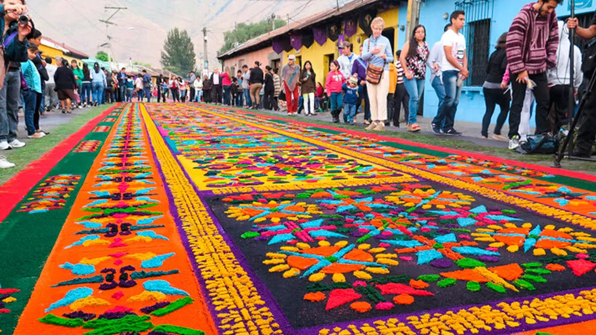 La celebración guatemalteca es una manifestación cultural en la que se decora el pavimento de las calles con flores y coloridas alfombras y que supone una sinergia entre la fe católica y los pueblos prehispánicos