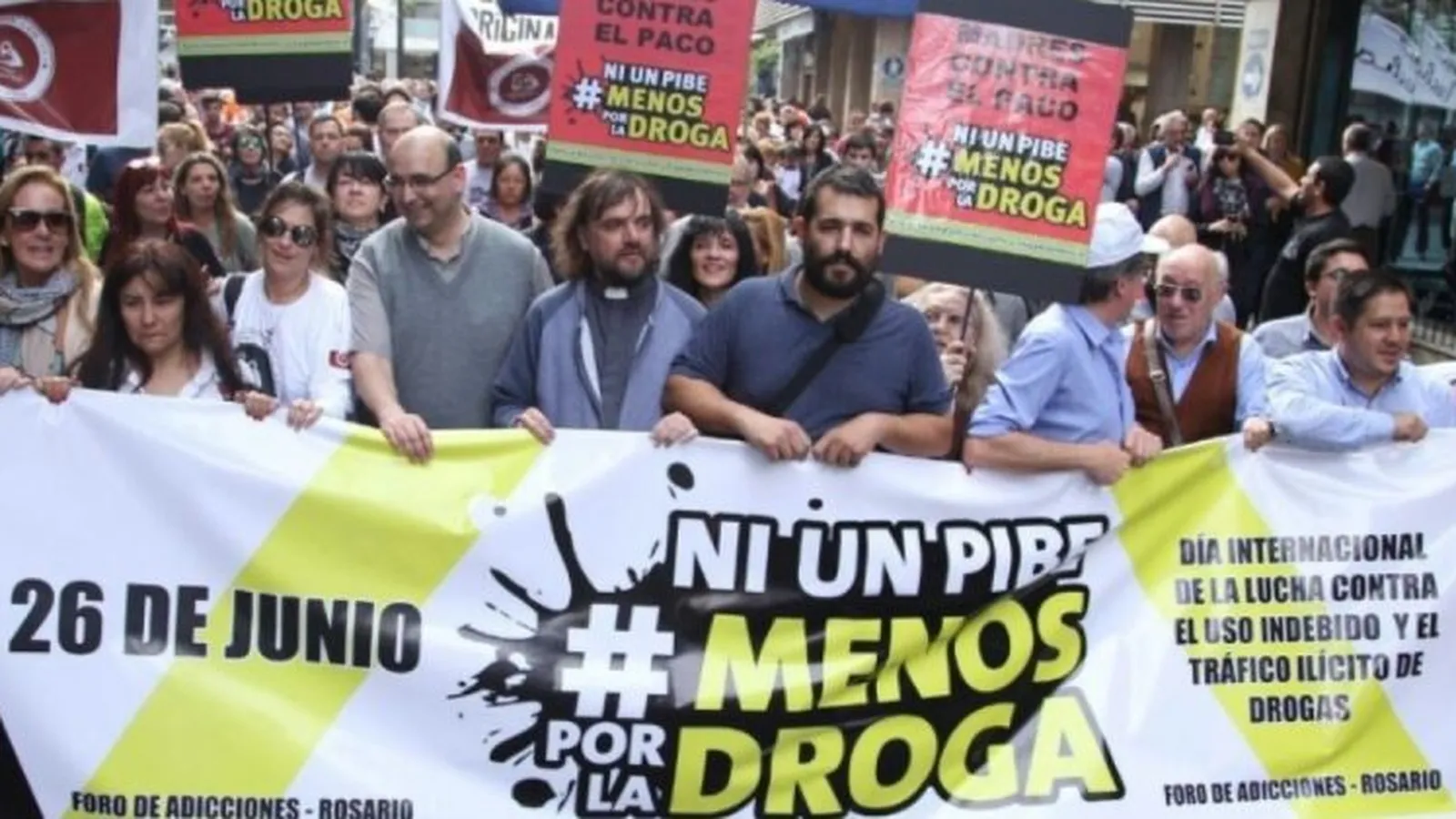 - gritar y clamar con vehemencia y desesperación “¡Ni un pibe menos por la droga!”, porque la droga mata en el centro de nuestras ciudades, pero sobre todo en la periferia de nuestros barrios donde nuestros pibes y pibas pobres están en riesgo permanente;