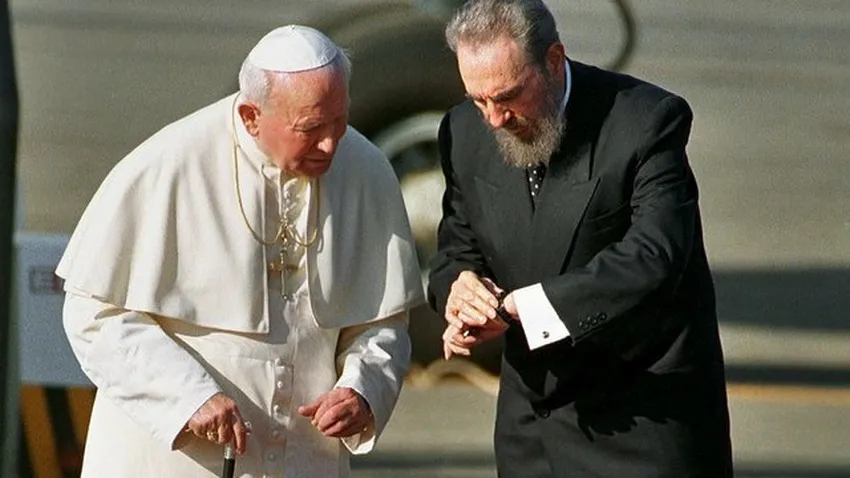 Juan Pablo honró a Cuba con su visita entre el 21 y el 25 de enero de 1998, y fue recibido y despedido por el Fidel Castro.