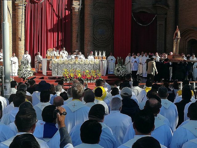 Después el delegado de Francisco destacó la obra misionera realizada por la Beata Nazaria Ignacia, quien el 14 de octubre de 2018 será canonizada por el Pontífice. "No puedo dejar de citar el gran ejemplo de una mujer boliviana por adopción que bajo el impulso de cuanto Dios había obrado en ella se hizo misionera; no solo asumió el nombre de Jesús, lo anunció y siguió la obra de Cristo en esta tierra bendita de Bolivia". Explicó que la futura santa boliviana fundó el nuevo instituto las Misioneras Cruzadas de la Iglesia en Oruro "para que su pasión por el Evangelio y por los pobres pudiera continuar más allá de su vida que ofrecía con gusto y por la Iglesia".