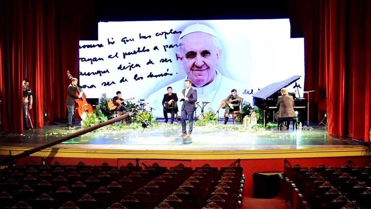 Dos de los momentos centrales de la velada estuvieron protagonizados por regalos preparados para el religioso antes de partir. Uno de ellos fue protagonizado por el propio papa Francisco cuando desde el escenario, el conductor Luis Moulin, leyó el texto escrito de puño y letra por el mismo sumo pontífice que resalta a Julián como “uno de los grandes poetas del pueblo, creador de canto, de vida, de belleza”.
