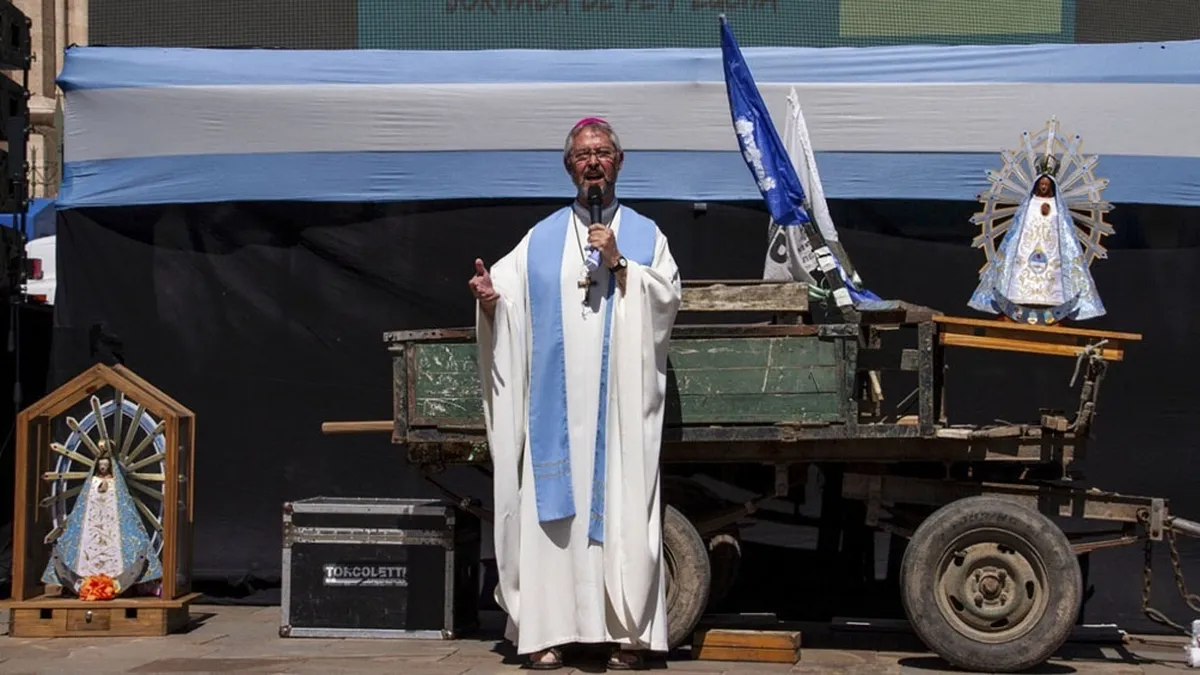 “Le escribe antes de ayer (jueves 11 de marzo) que ustedes venían ante la Virgen, nuestra madre, a rezar por él y hoy me respondió”, contó Scheinig delante de una precaria carreta, que se usó como escenario y allí se colocó una réplica de la Virgen de Luján.