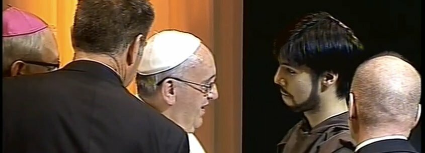 "Francisco, querido, el pueblo está contigo", cantaron los miles de asistentes, que obsequiaron al Papa con un concierto y con una suerte de musical sobre la vida de San Francisco y su "Laudato Si" que emocionaron a un Bergoglio cansado pero convencido de que está ante la parte final de un viaje histórico. Al final del mismo, Francisco se abrazó a "Francisco", y bendijo a todo el elenco.