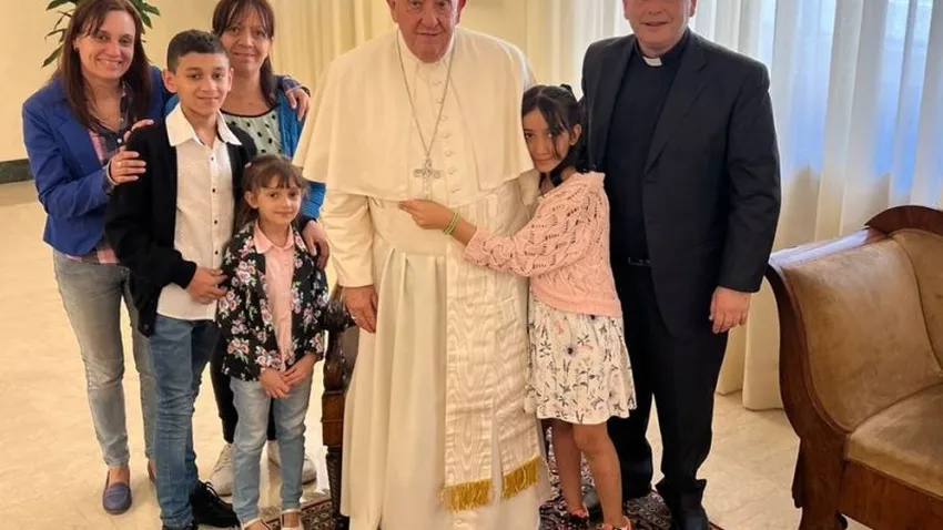 El jueves 23 de mayo, el grupo visitó al pontífice en la Casa Santa Marta, donde reside. Las madres, los niños y el sacerdote compartieron 35 minutos con el Papa