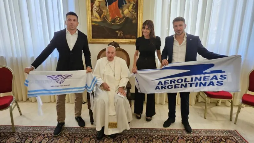 Los representantes sindicales expresaron al pontífice la "importancia" de Aerolíneas Argentinas y de su preservación y consideraron que la aerolínea "no sólo representa un símbolo de orgullo nacional, sino que desempeña un papel crucial en la conectividad y en el desarrollo económico del país", según publicaron.