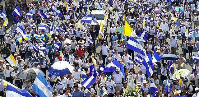 (Israel González Espinoza, corresponsal de RD en Nicaragua).- En una demostración de fuerza, cerca del millón de personas (según fuentes extraoficiales), se reunieron el fin de semana en Managua, capital de Nicaragua para unirse en la gran peregrinación convocada por la Iglesia Católica para exigir verdad, justicia, libertad y democracia, en la segunda gran manifestación contra el régimen de Daniel Ortega y su mujer, Rosario Murillo; tras la brutal represión ejercida contra manifestantes universitarios que han saldado la vida de no menos de 40 personas, aunque organismos de derechos humanos elevan esa cifra a 60.