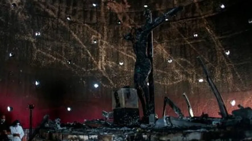 “Les convoco a un día de oración, silencio, llanto y súplica por el ultraje, irrespeto, sacrilegio y profanación a Jesús en su presencia real del Santísimo Sacramento y ante la destruida y calcinada imagen de la Sangre de Cristo y mirando la Cruz que permanece en pie”, expresa el comunicado.