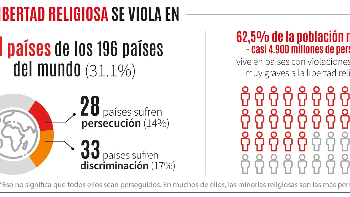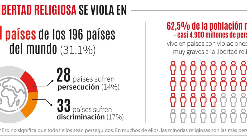 Ayuda a la Iglesia Necesitada reveló que 62,5 por ciento de la población vive en países donde hay violaciones graves o muy graves a la libertad religiosa.