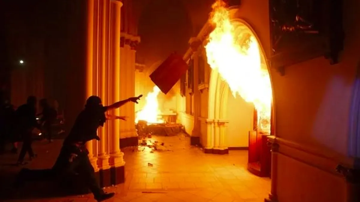 Manifestantes incendian la iglesia de los carabineros de Chile