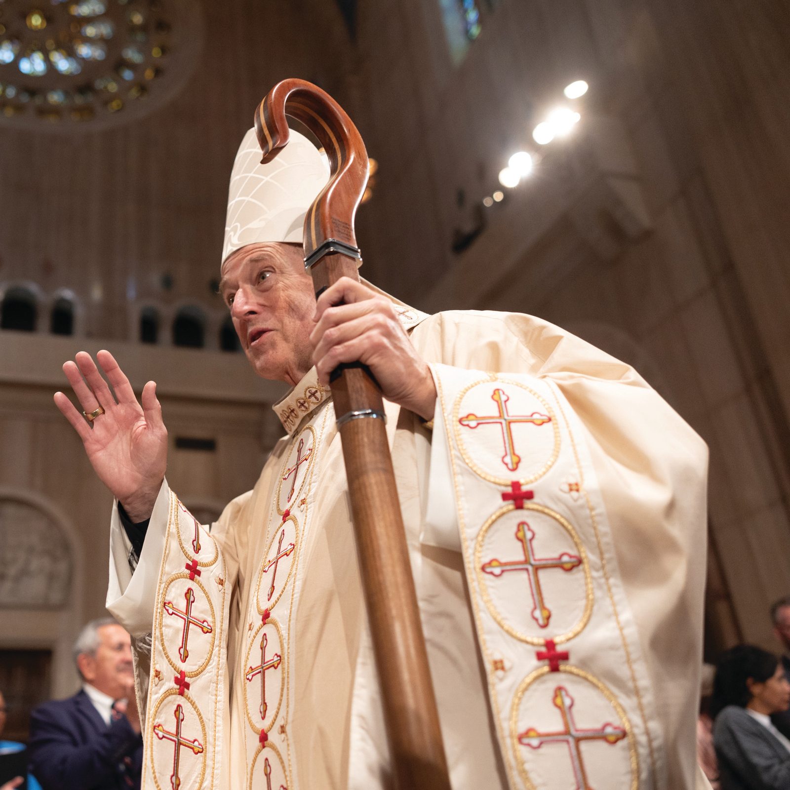 El cardenal McElroy, con el báculo de arzobispo de Washington