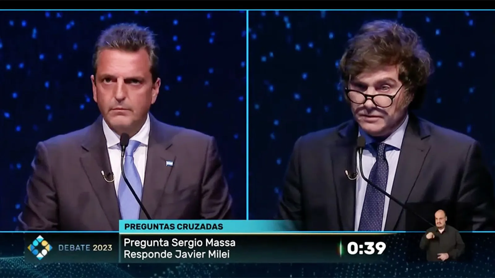 En un debate presidencial entre Sergio Massa (UP) y el líder ultraderechista (LLA)
