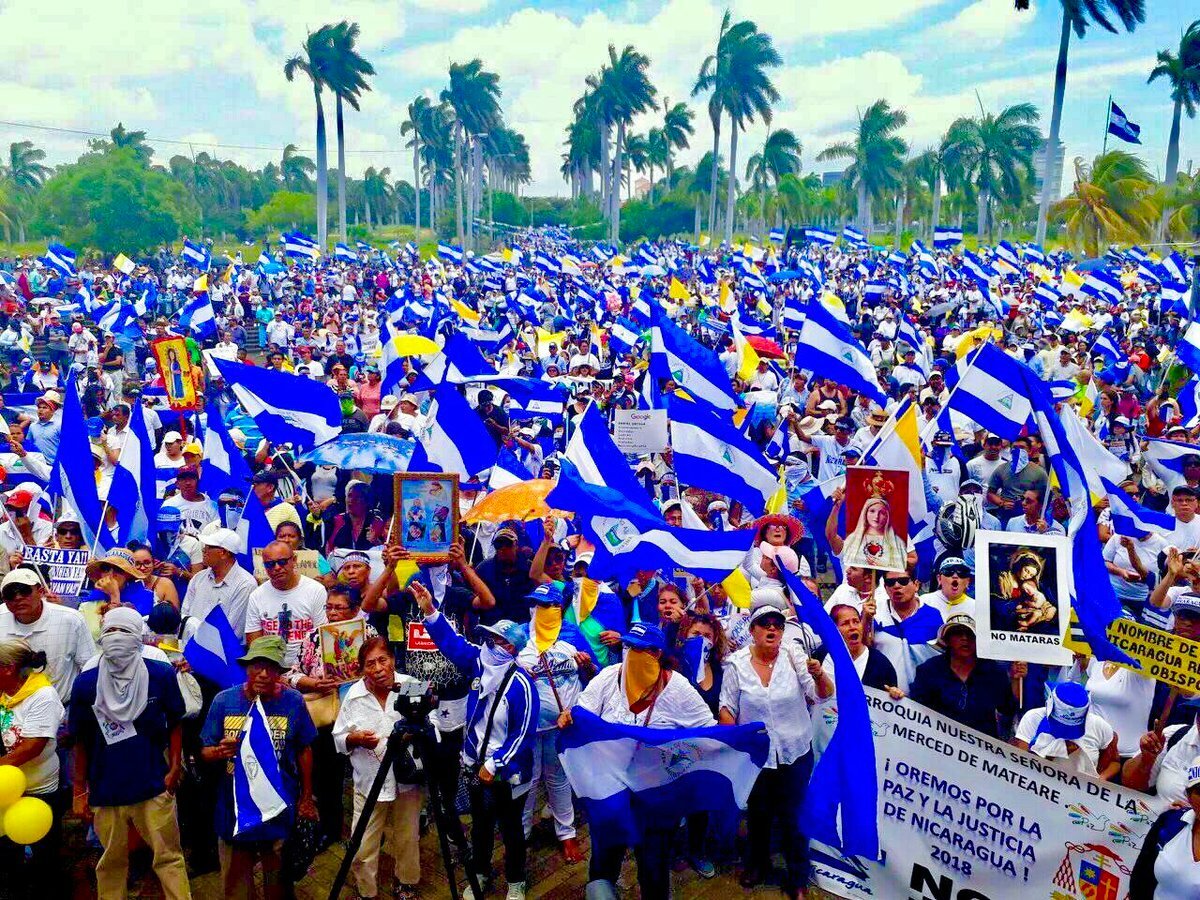 La manifestación convirtió el centro financiero de Managua en una verdadera marea humana blanquiazul y blanco-amarillo, dónde las diferencias religiosas no fueron impedimento para demostrar el inmenso respaldo social que posee la Iglesia nicaragüense, inmiscuida en un proceso de Diálogo Nacional que está atascado desde hace un mes debido a la negativa del régimen orteguista para negociar una efectiva democratización del país y el cese de la brutal represión que se ha saldado con 448 ciudadanos fallecidos, según oenegés dedicadas a la tutela de los derechos humanos en el país.