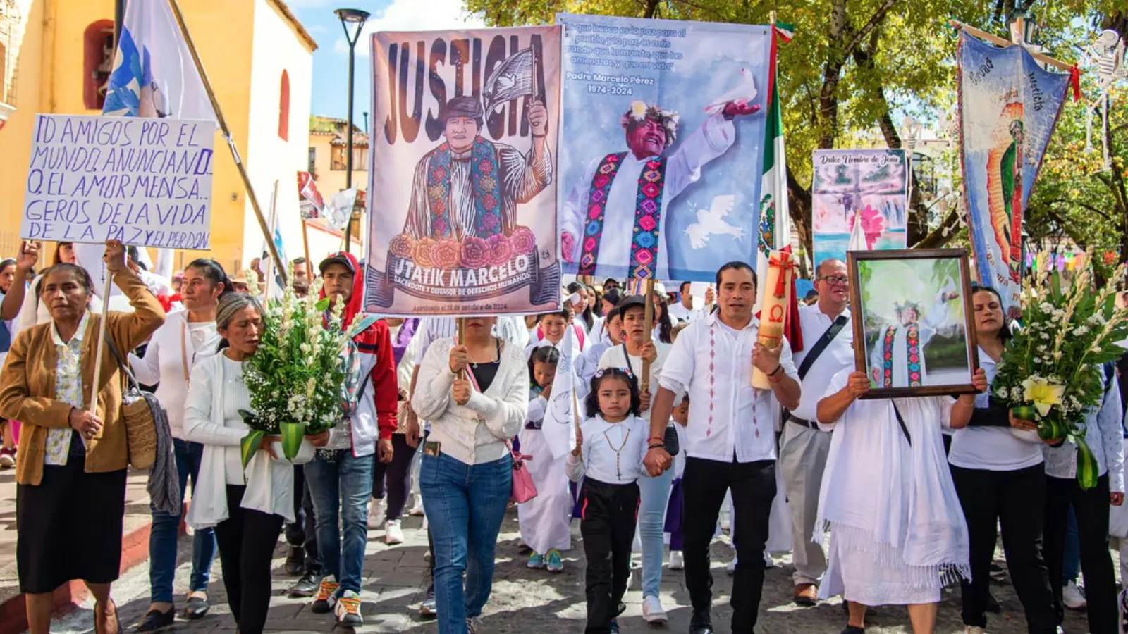 Indígenas de nueve etnias, pobladores, creyentes y organizaciones civiles peregrinaron este domingo por las calles de San Cristóbal de Las Casas para pedir justicia por el asesinato del padre Marcelo Pérez, defensor de los derechos humanos