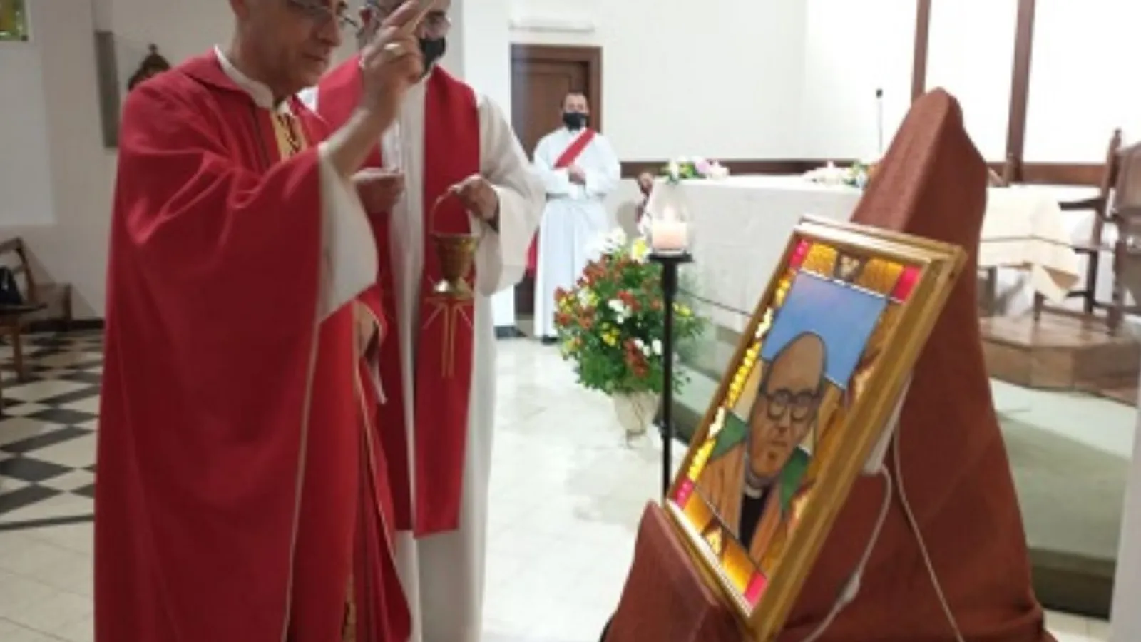 Durante la celebración, fue bendecido un vitral con el rostro de monseñor Angelelli, que será colocado en el templo.