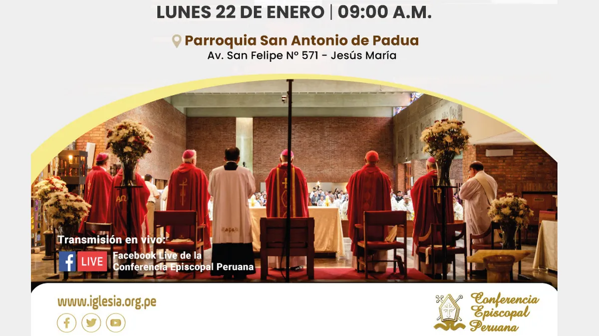 La 126ª Asamblea Plenaria Ordinaria del Episcopado Peruano iniciará el próximo lunes 22 de enero con una Santa Misa en la Parroquia San Antonio de Padua, en Jesús María, presidida por el Excmo. Mons. Miguel Cabrejos Vidarte