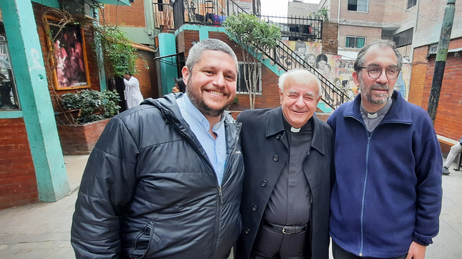 Los estaban esperando varios responsables de la Familia Grande Hogar de Cristo —María Elena Acosta, Pablo Vidal, Germán Schattenhofer—, el párroco Pedro Cannavó y padre obispo Gustavo Carrara, vicario general de la arquidiócesis de Buenos Aires y también vicario para las villas y barrios populares de la capital porteña.