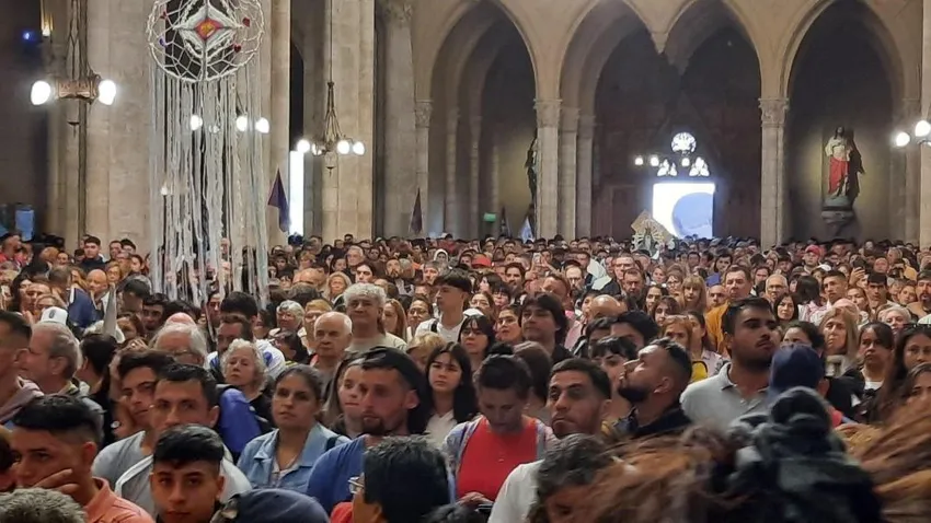 Desafiando la lluvia intermitente, un poco antes del mediodía, este domingo 16 de marzo de 2025 fueron llegando a la Basílica de Luján en Argentina las comunidades que están celebrando en la Villa Marista los 17 años de vida de los Hogares de Cristo y que invitaron a esta misa para pedir especialmente por la salud del Papa Francisco