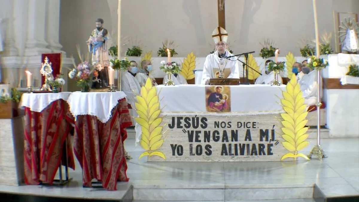 En la ceremonia que fue transmitida por los medios desde las 11 a causa de la pandemia, el arzobispo de Buenos Aires afirmó que "hoy nos ponemos frente a la imagen del patrono del Pan y del Trabajo: pedimos que nos dé una mano e interceda ante el «Dios que ama la vida» para que no falte lo que sostiene a nuestras familias, nos dignifica y es causa de alegría para todos".