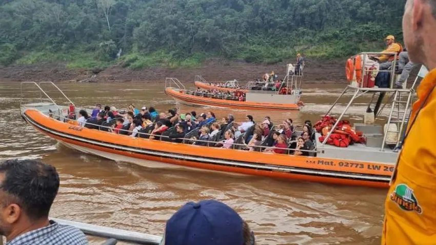 Con la presencia del obispo de Puerto Iguazú, monseñor Nicolás Baisi; los obispos de las tres fronteras; el intendente de Puerto Iguazú, Claudio Filippa; el presidente de la Cámara de Representantes, Oscar Ahuad, los peregrinos se embarcaron en lanchas y partieron de Puerto Macuco, en Cataratas, sector donde se instalaron los jesuitas hace 398 años.