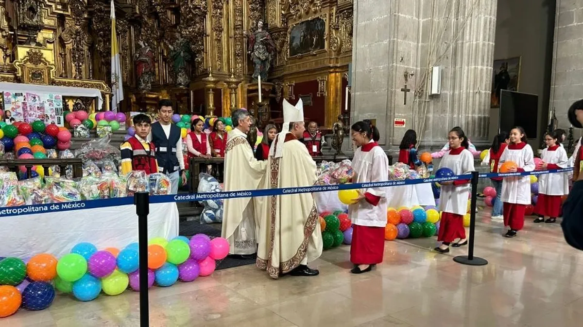 En una celebración llena de color, niñas y niños, recibieron los regalos de manos de Mons. Carlos Enrique Samaniego López, Obispo Auxiliar de México, y del P. Ricardo Valenzuela, Deán de la Catedral.