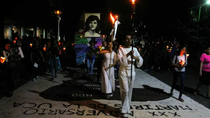La peregrinación, que avanzó por las calles internas del campus y su periferia, incluyó a miles de personas que llevaban velas, palmas adornadas de colores y pancartas con imágenes de los "mártires de la UCA”. Quienes participaron también hicieron un "viacrucis" en el que pidieron por las víctimas del desplazamiento interno forzado y la migración irregular. Las actividades de conmemoración concluyeron con una misa y una vigilia.