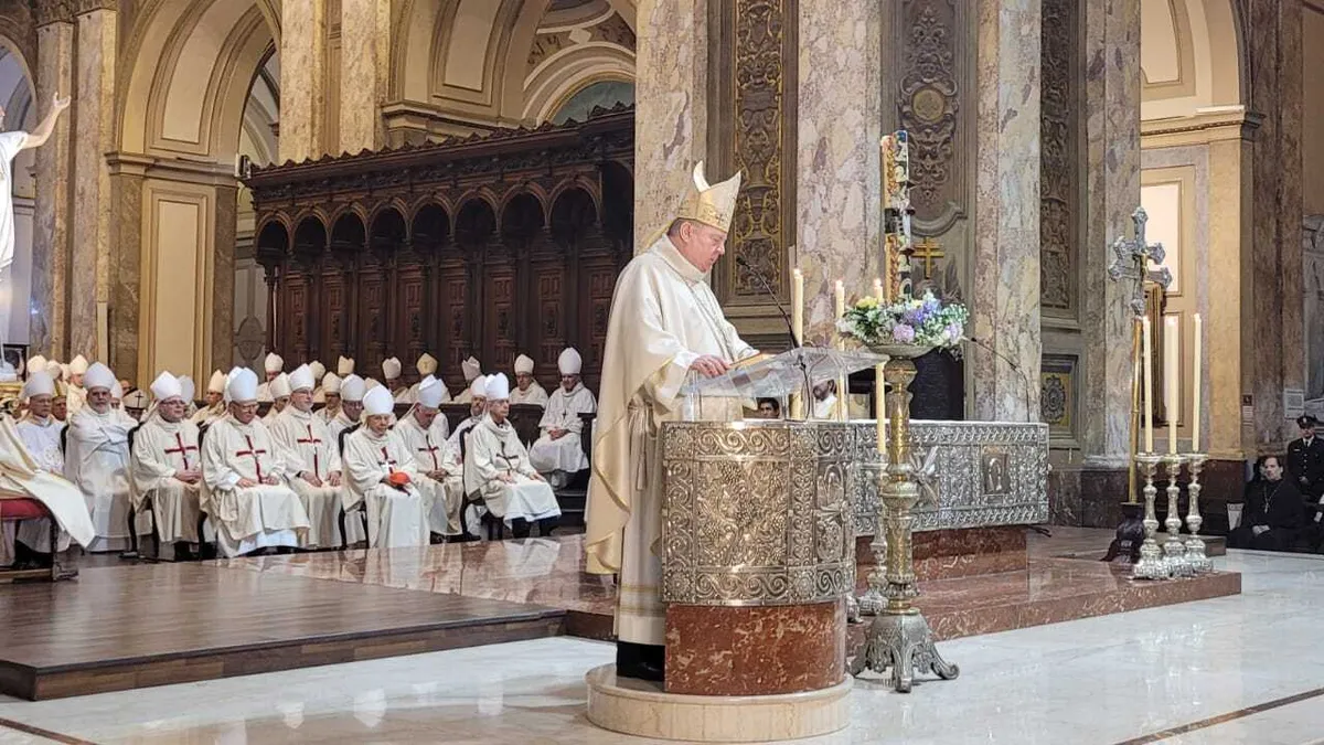 El nuncio apostólico, monseñor Miroslaw Adamczyk, presidió hoy la misa de acción de gracias por los diez años del pontificado de Francisco, en la catedral metropolitana de Buenos Aires, donde destacó el orgullo nacional que significa tener un pontífice argentino y rezó para que “tenga mucha salud y fuerzas y las gracias terrenas y celestiales necesarias para ser el Pedro de este tiempo”.