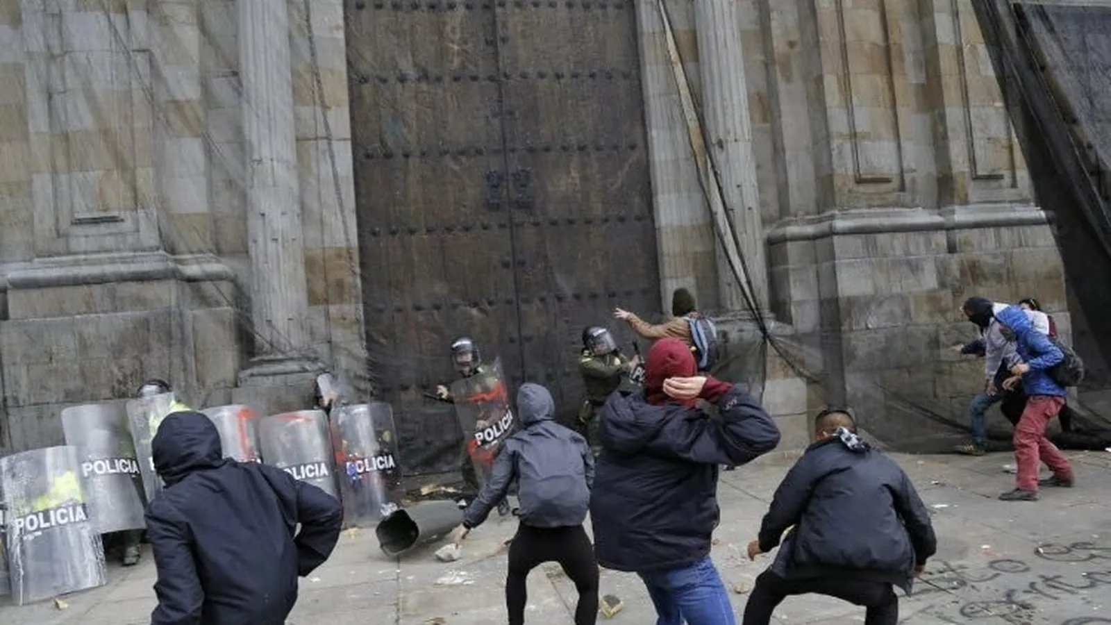 Vándalos atacan con piedras la Catedral Primada de Bogotá