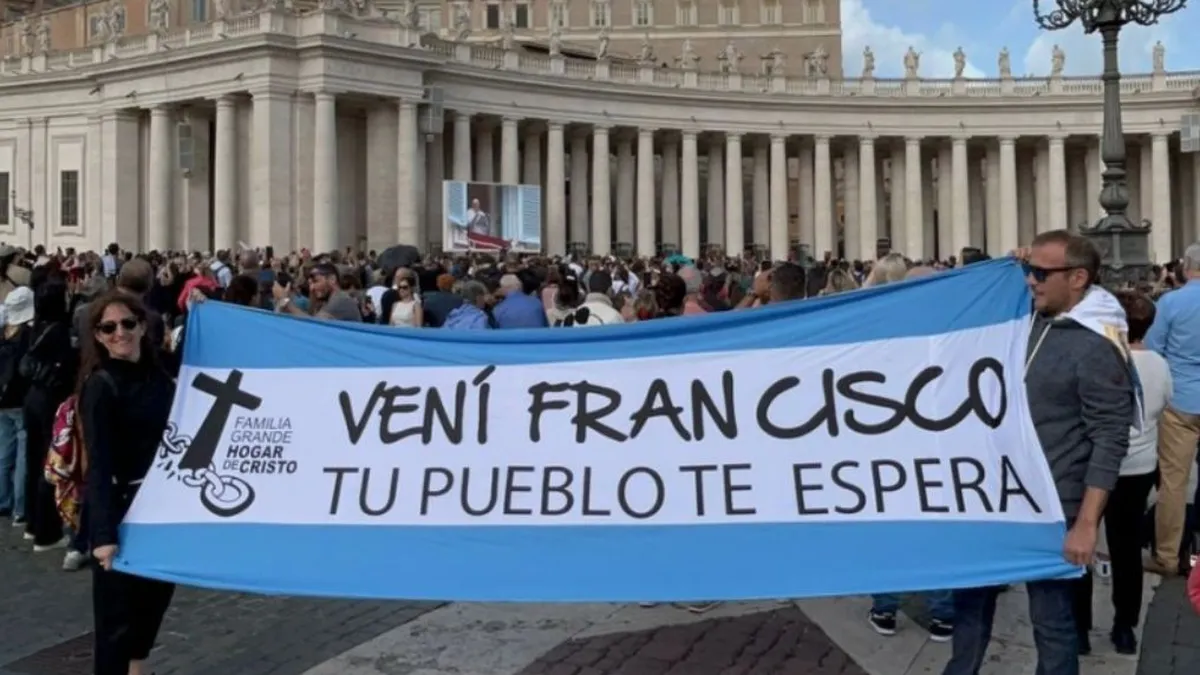 La bandera argentina "Vení, Francisco, tu pueblo te espera" se hace notar en el Vaticano