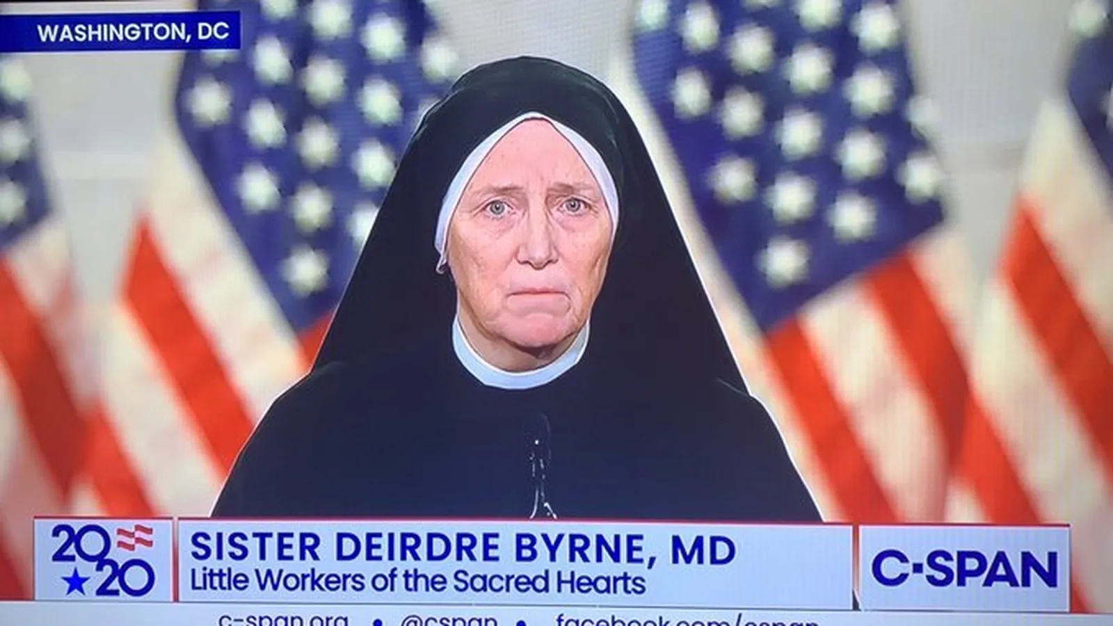Sor Deirdre Byrne, militar, cirujana y misionera, intervino anoche en la Convención Republicana, con una cerrada defensa del actual presidente de EEUU y ya candidato a las presidenciales del 3 de noviembre: "Donald Trump es el presidente más provida que ha tenido esta nación, defendiendo la vida en todas las etapas", aseguró la religiosa, conocida por su posición antiaborto.