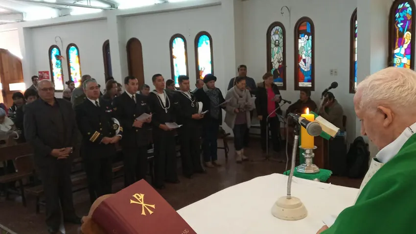 En la misa participaron varios guardiamarinas de la Armada chilena destinados en Puerto Huasco, que saludaron al cardenal Cañizares al término de la eucaristía.