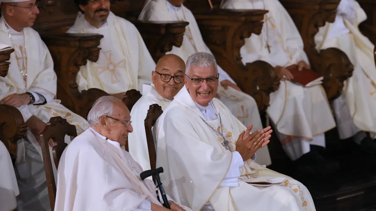 Posteriormente, el flamante obispo se dirigió en procesión hacia la Catedral de Lima, acompañado de autoridades eclesiásticas, sacerdotes y cientos de fieles. Entre ellos, destacó Gustavo Gutiérrez, el padre de la Teología de la Liberación, con quien se sentó en el atrio.