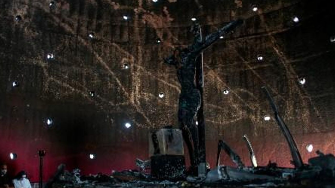 Un desconocido lanzó una bomba e incendió una imagen de la Sangre de Cristo que lleva 382 años en Nicaragua y que fue venerada por San Juan Pablo II en 1996, cuando se arrodilló y oró a sus pies, durante su segunda visita al país, de mayoría católica.
