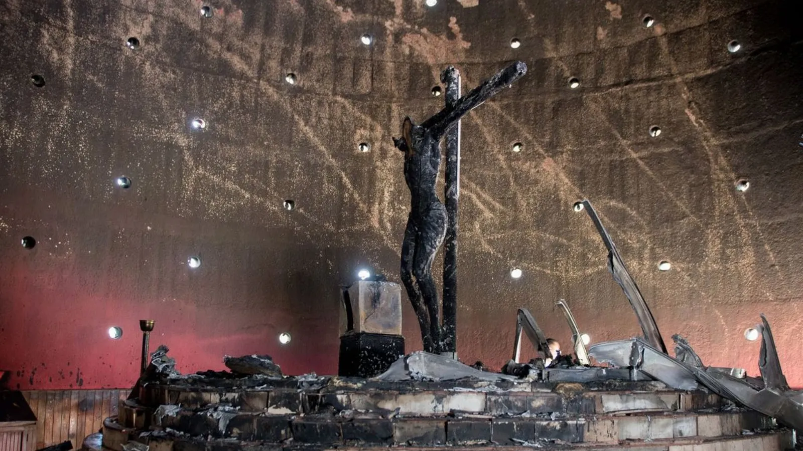 Un desconocido lanzó una bomba e incendió una imagen de la Sangre de Cristo que lleva 382 años en Nicaragua y que fue venerada por San Juan Pablo II en 1996, cuando se arrodilló y oró a sus pies, durante su segunda visita al país, de mayoría católica.