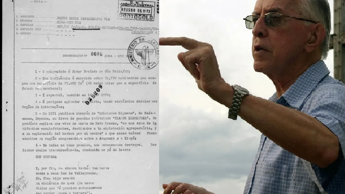 Considerado 'subversivo' por su defensa de los pueblos originarios, la dictadura militar brasileña preparó un informe en noviembre de 1973 a través de SNI (Servicio Nacional de Información). Los archivos, liberados durante el gobierno de Lula Da Silva, revelan una auténtica obsesión de los militares con Casaldáliga, por su lucha en favor de los campesinos frente a los terratenientes y latifundistas.