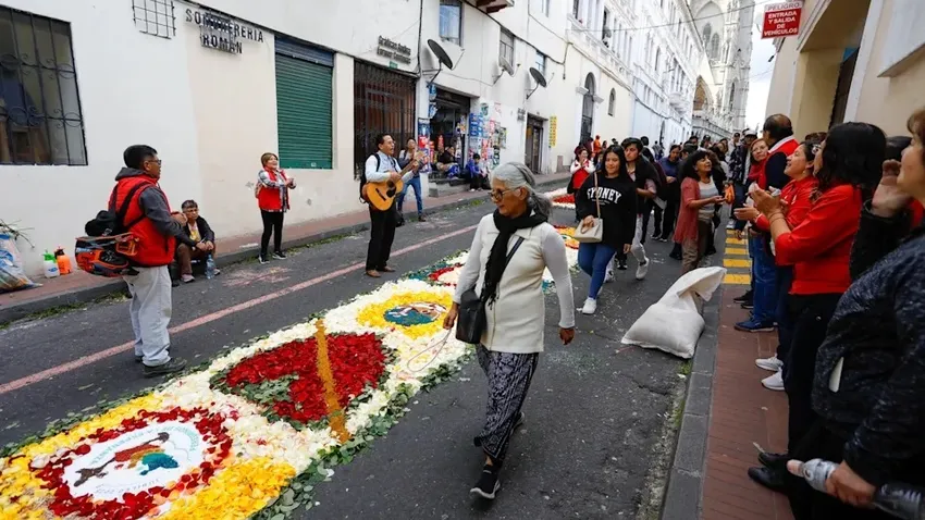 El año pasado también se colocaron flores en las calles del centro de Quito durante el 53 Congreso Eucarístico Internacional, que giraba en torno a la eucaristía y tenía como lema "Fraternidad para sanar el mundo".