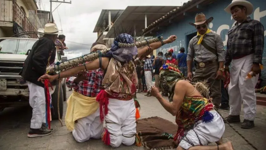 La tradición nació con la conquista española y transcurre casi en su totalidad en silencio, con los hombres en penitencia murmurando para sus propios adentros en varios segmentos del trayecto.