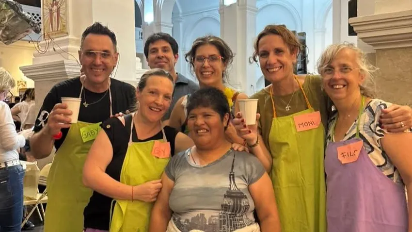 Dentro del Santuario popular de San Cayetano, en el barrio periférico de Liniers, Buenos Aires, se dispusieron largas filas de mesas para cenar y compartir. El periodista Lucas Schaerer fue uno de los servidores. Contó su experiencia