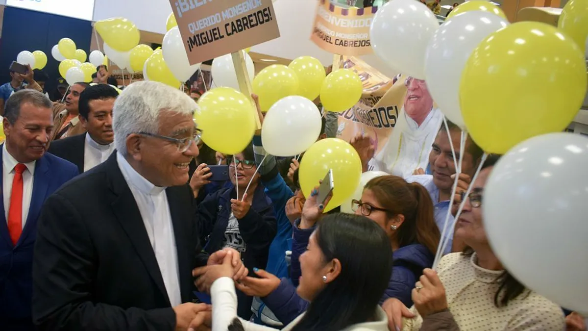 Calurosa bienvenida. Decenas de jóvenes de diversas parroquias de Lima y el Callao, acompañados por sacerdotes y religiosos de diferentes congregaciones, recibieron anoche a Monseñor Miguel Cabrejos, flamante Presidente del Episcopado Latinoamericano, a su llegada a Lima en el Aeropuerto Internacional Jorge Chávez, luego de haber participado en la XXXVII Asamblea General Ordinaria del Consejo Episcopal Latinoamericano (CELAM) que se llevó a cabo en Tegucigalpa, Honduras, y donde fue elegido para ocupar el más alto cargo de este organismo de la región.