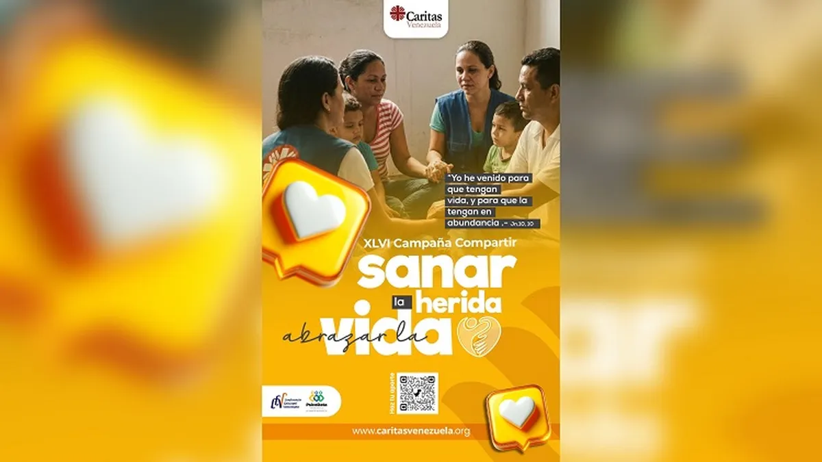 (AICA).- Al inicio de la Cuaresma, Cáritas de Venezuela presentó oficialmente la XLVI edición de la Campaña Compartir 2026, con el lema "Sanar la herida, abrazar la vida", una propuesta pastoral que invita al pueblo venezolano a recorrer un camino de restauración desde la fe, la solidaridad y el servicio comunitario.