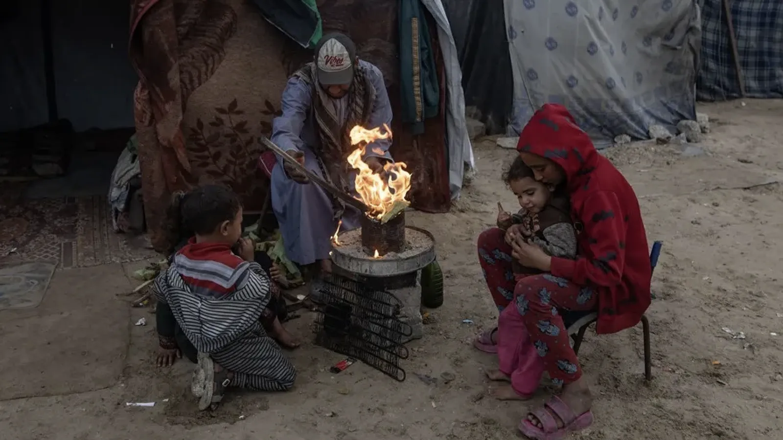 Una familia palestina en un campo de refugiados