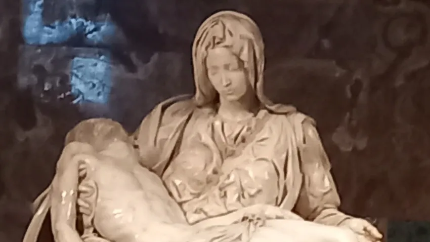 La iconografía de la imagen de la Piedad ha tenido muchas expresiones. Algunas de ellas muestran a María con Jesús muerto en los brazos, trayendo a su memoria las veces que lo abrazó, siendo niño, representando el cuerpo del Hijo de forma desproporcionada. La Madre concentra en su regazo toda la vida del Hijo amado de Dios, al que no le faltó nunca el amor de su Padre, y en esta vida, también, la ternura de su madre.