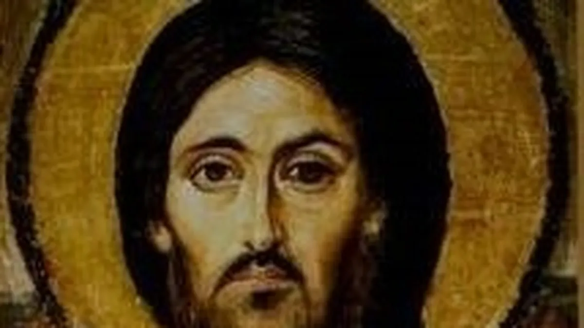 Observa el icono más antiguo que se venera en el Monasterio de Santa Catalina del Sinaí. El rostro de Jesús aparece iluminado de manera diferente, lo mismo que su mirada. En ello se ha querido ver la forma de plasmar la divinidad y la humidad de Cristo. La mano derecha, en posición de bendecir, revela con el gesto de sus dedos que es la Segunda Persona de la Santísima Trinidad, y se muestra con el Libro Santo en la mano, como quien es la Palabra y Maestro de sabiduría.
