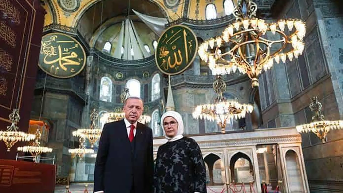 Erdogan foi perigosamente muito longe, ao celebrar, no discurso oficial em árabe —a referência não é mencionada nem na versão em turco nem em inglês —, esta reconversão como um primeiro passo de um “renascimento” islâmico, que deve ir de Bucara, no Uzbequistão, a Al Andalus, Espanha: ele “é o símbolo do regresso do sol nascente da nossa civilização islâmica”.