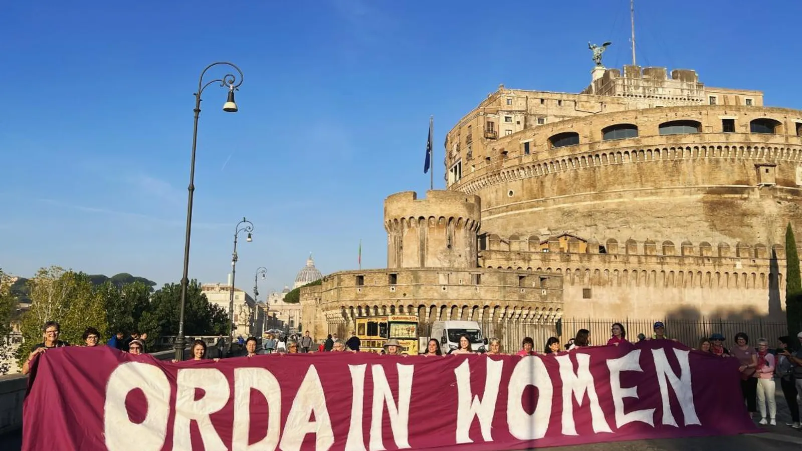 “En los documentos del sínodo escriben que la ‘tienda’ que se va a ampliar es un ‘espacio de comunión, un lugar de participación y una fundación para la misión’. Y nosotras decimos: La comunión debe incluir el reconocimiento de la igual dignidad de las mujeres y de todos los géneros. La participación debe incluir acoger y alimentar las vocaciones de las mujeres llamadas al sacerdocio. La misión debe incluir el ejemplo del Evangelio de inclusión radical... Así que hemos extendido nuestra tienda, dejando que el mensaje sople en el viento y se lleve a las puertas de la sala del sínodo. Los que están dentro deben estar abiertos al viento del Espíritu Santo moviéndolos, agrandando la tienda”.