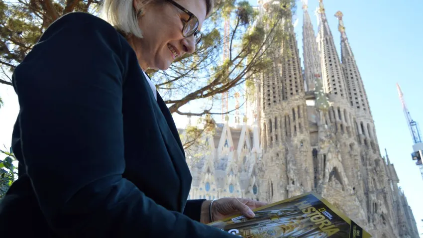 Finalmente, la experta desaparece entre la multitud, con varios ejemplares de National Geographic bajo el brazo, mientras la Sagrada Familia sigue alzándose hacia el cielo, testigo silencioso del paso del tiempo, de la devoción y de la admiración que cada mirada aporta a la historia viva del templo.