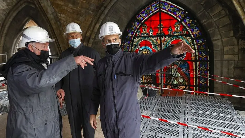 Macron destacó también los extraordinarios avances en la restauración y reconstrucción de la nave, el coro, las molduras y la torre de la catedral. La reconstrucción de la aguja se lleva a cabo de acuerdo al modelo original de Viollet-le-Duc.